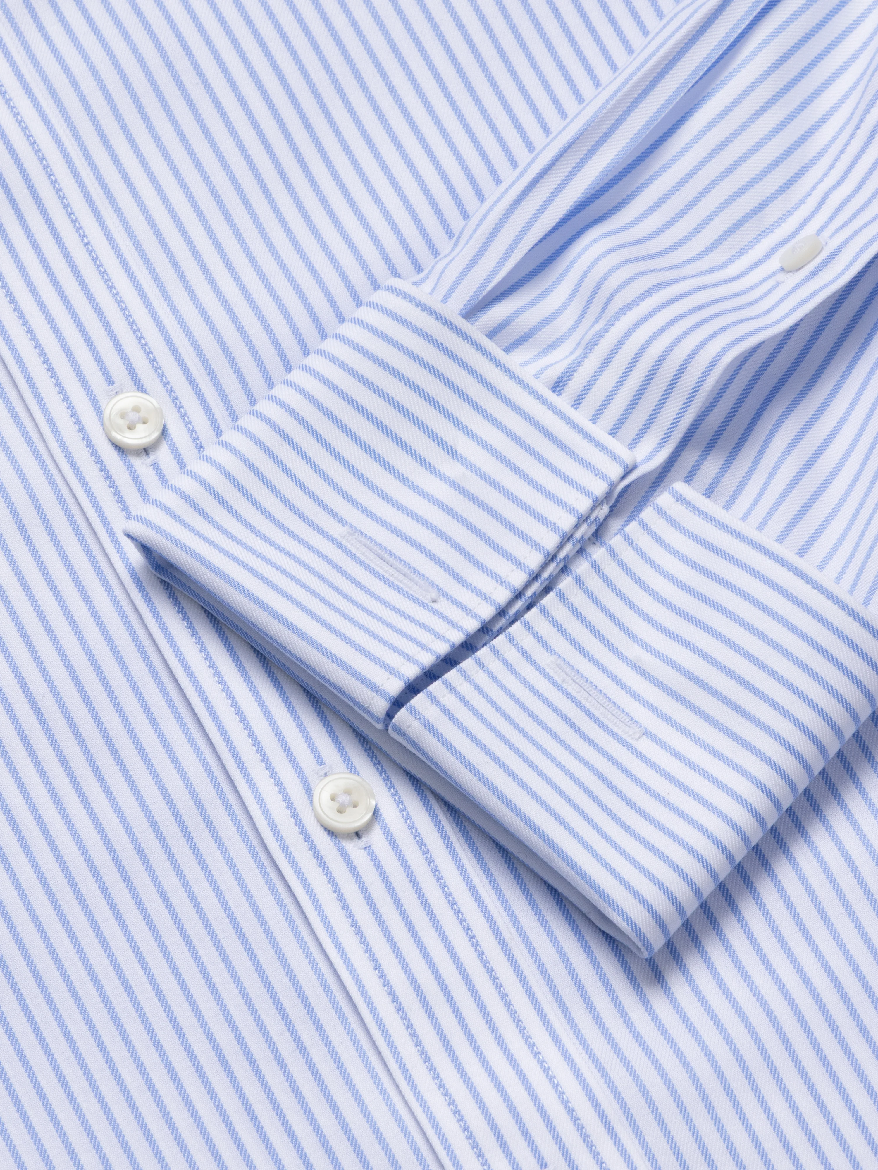 This slim fit striped shirt reflects our heritage in shirtmaking, delivering timeless style and the perfect fit. Crafted from two-ply cotton, sourced from America, it combines a luxuriously soft hand feel with a crisp, breathable poplin weave. Finished with our advanced non-iron treatment, it stays smooth and crease-free from morning meetings to evening events.