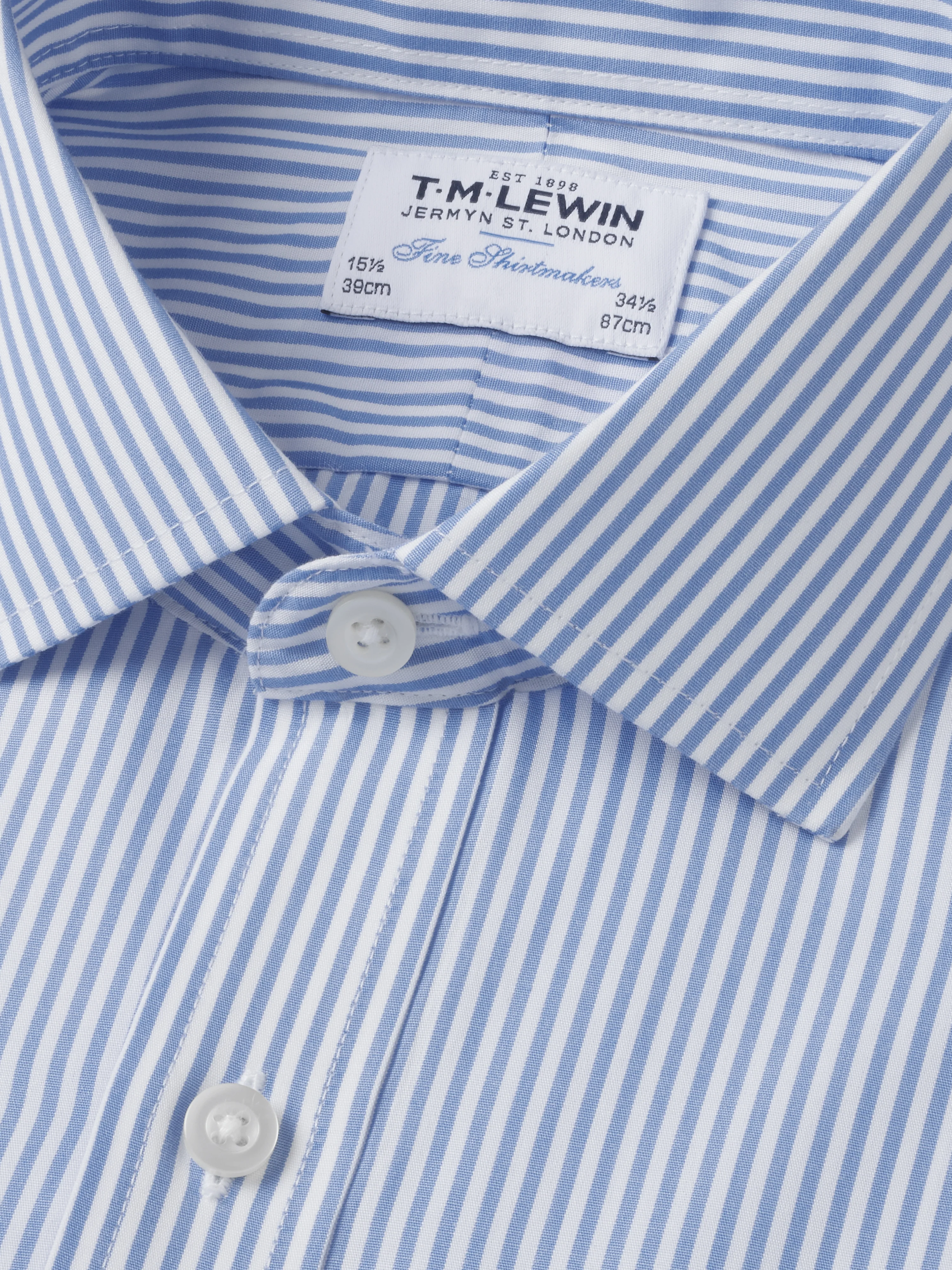 A must-have addition to your shirt rotation. With it's streamlined fit and lightweight poplin weave, this crease-resistant style is sure to keep you comfortable all day long; no matter what's on the agenda. Accented with classic light blue stripes, this shirt offers a sophisticated and polished look to suit the style needs of the workplace and beyond.